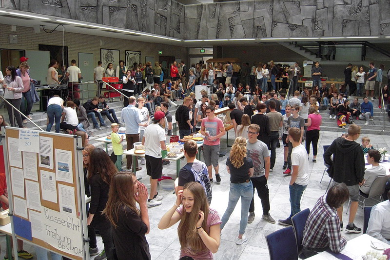 Neben vielen verschiedenen kulinarischen Highlights wurde den Gästen ein abwechslungsreiches Programm geboten: unter anderem die Darbietungen der Big Band und der Tanzgruppe, die Vorführung und Erforschung eines Luftkissen-Fahrzeugs und ballistischen Pendels sowie die Präsentation der Fahrten und Exkursionen durch die Schülerinnen und Schüler. Vor dem Schulgebäude wurde ein Segelflugzeug für die Besucher ausgestellt und für die kleinen Gäste gab es neben Luftballons und Eis eine Hüpfburg.