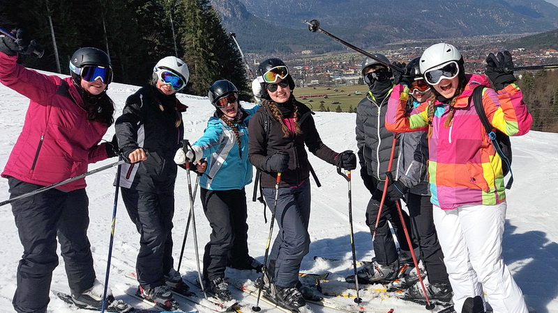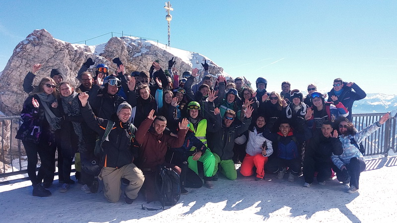 Wir verbrachten vier tolle Tage miteinander im Schnee und kehrten am 22. März spät abends zurück. Die Neulinge, die noch nie auf Skiern standen, absolvierten an den ersten Tagen eine Skiausbildung auf dem Anfängerhügel. Währenddessen verbesserten die fortgeschrittenen Schüler ihre Technik und sausten geübt die Pisten herunter. In diesen bunt durchmischten Gruppen übten wir gegenseitige Rücksicht und Unterstützung, was das soziale Miteinander merklich verbesserte. Abends gab es leckere italienische Gerichte in einem Restaurant in der Nähe mit interessanten Gesprächen zwischen den Teilnehmerinnen und Teilnehmern der unterschiedlichen Herkunftsländer. Nach intensivem Üben und Perfektionieren der Bewegungsabläufe fuhren wir am vorletzten Tag auf die Zugspitze. Dieser Berg ist in vielerlei Hinsicht mit keinem anderen zu vergleichen.