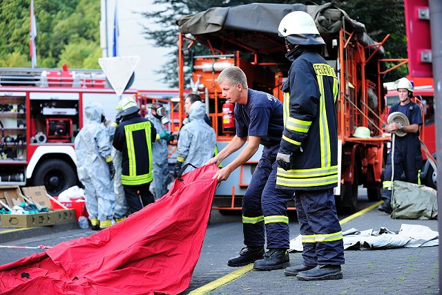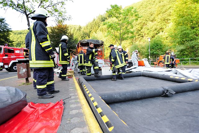 Die Übung wurde von Kreisfeuerwehrinspekteur Manfred Schuler beobachtet und im Anschluss bewertet. Er lobte die gute Zusammenarbeit der Kräfte und betonte das es wichtig sei, in Zukunft solche Übungen zu absolvieren. Gefahrstoffzugführer Reiner Pint wies auf kleinere Mängel im Ablauf hin, war im großen und ganzen mit der Übung aber sehr zufrieden. Im Einsatz waren rund 80 Einsätzkräfte von Feuerwehr und THW.