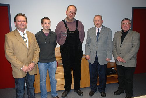 Das Bild zeigt v.l.n.r.: Bereitschaftsleiter Elmar Gierenz und die neu verpflichteten Vereinsmitglieder Martin Heyen und Martin Meyers, sowie den Vereinsvorsitzenden Günter Keßler und der Vertreter der Stadt Neuerburg, Herrn Wilhelm Ahlert.
