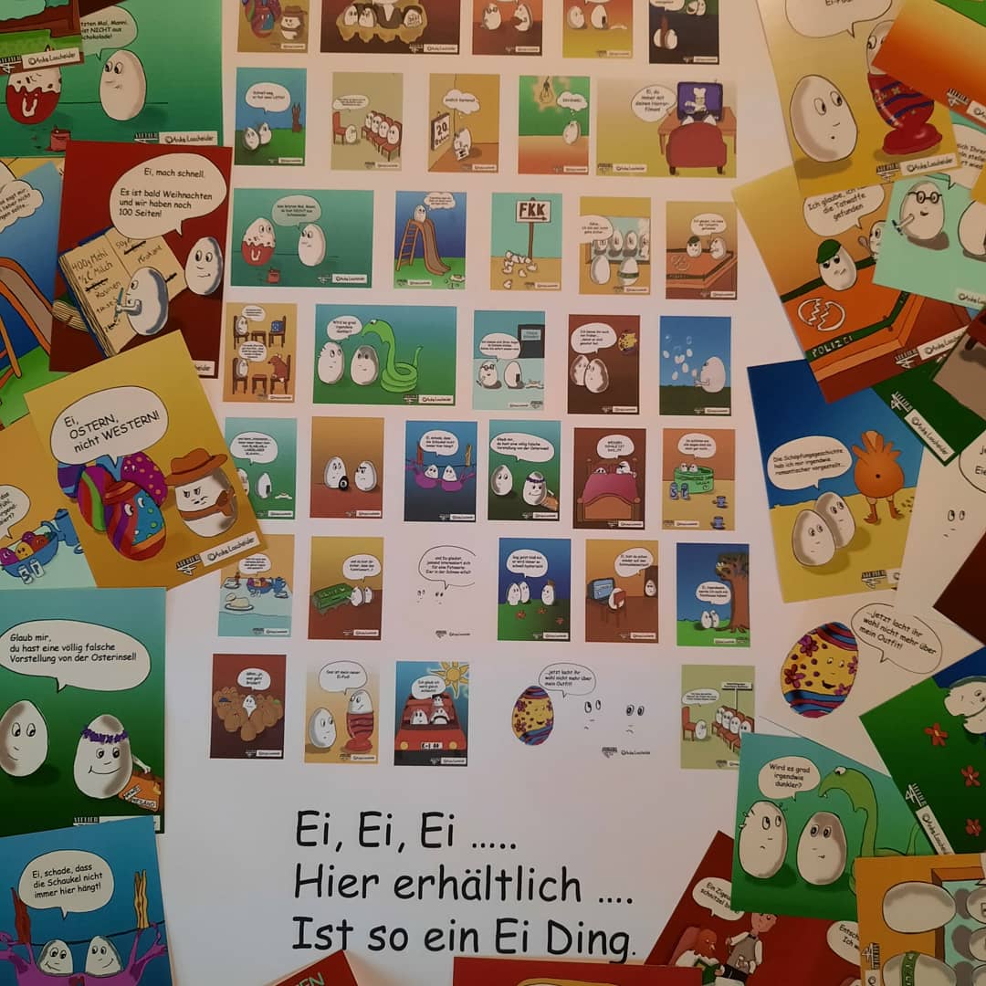 Ein weiterer Blickfang befindet sich im Schaufenster von Hilla Theis. Dort hat die Bitburger Künstlerin Anke Loscheider vom AtelierF zahlreiche amüsante Osterkarten ausgestellt. Da ist Lachen angesagt Einfach mal vorbeischauen!