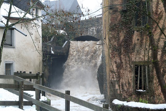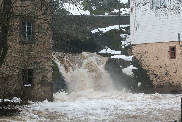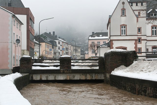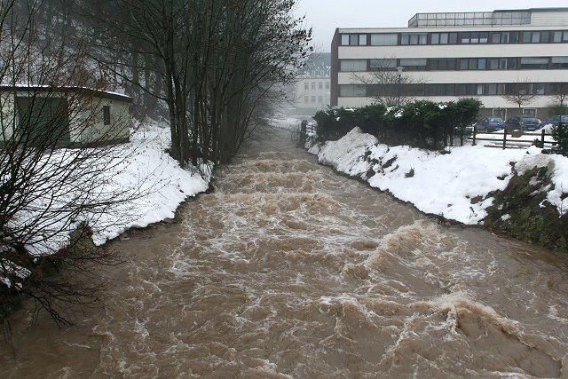 Weitere Teile der Stadt Neuerburg sind ebenfalls vom Hochwasser betroffen. An der Verbandsgemeinde Neuerburg droht das Wasser über die Ufer zu treten und in das Amtsgebäude zu laufen. Die Feuerwehr ist mit ca. 20 Mann im Einsatz. Bis jetzt ist noch nicht absehbar wielange der Einsatz dauert, vermutlich werden zur Unterstützung weitere Feuerwehren zur Hilfe angefordert. Der Pegel der Enz ist weiterhin steigend.