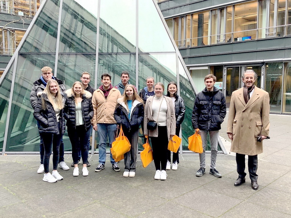 Angekommen in Mainz empfing uns Streit, Fraktionsvorsitzender der Freien Wähler, bereits vor dem Landtagsgebäude, in welchem er uns am Vormittag seinen Arbeitsalltag näherbrachte. Zu Beginn bekamen wir eine ausführliche Führung durch das Gebäude. Besonders beeindruckt waren wir von dem Plenarsaal, in dem wir als Schülerinnen und Schüler die Möglichkeit bekamen, Dr. Streit Fragen über aktuelle politische Themen zu stellen, die er ausführlich beantwortete und mit uns diskutierte. Im Anschluss wurden wir auf ein gemeinsames Mittagessen ins Restaurant des Landtags eingeladen. Dort war abermals Zeit für einen regen Austausch.