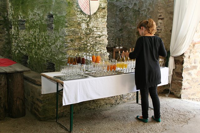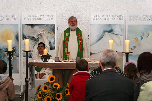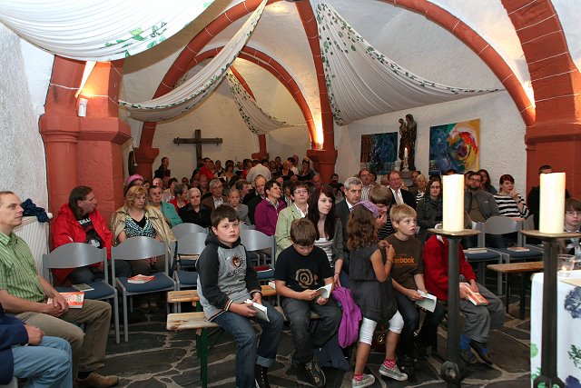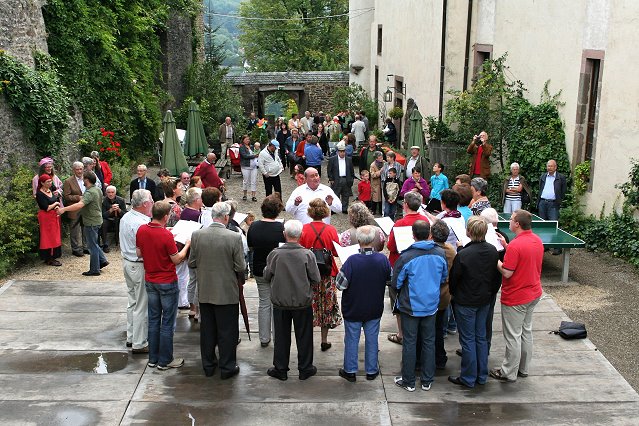 Den Abschluss dieser "Ora et Labora"-Woche bildete am heutigen Sonntag das Hochamt, welches wegen der schlechten Witterung nicht im Innenhof, sondern in der Burgkapelle gefeiert wurde. Zelebriert wurde die Messe vom Jesuiten-Pater Heribert Graf, während der gemischte Chor aus Gilzem die musikalische Gestaltung übernahm.