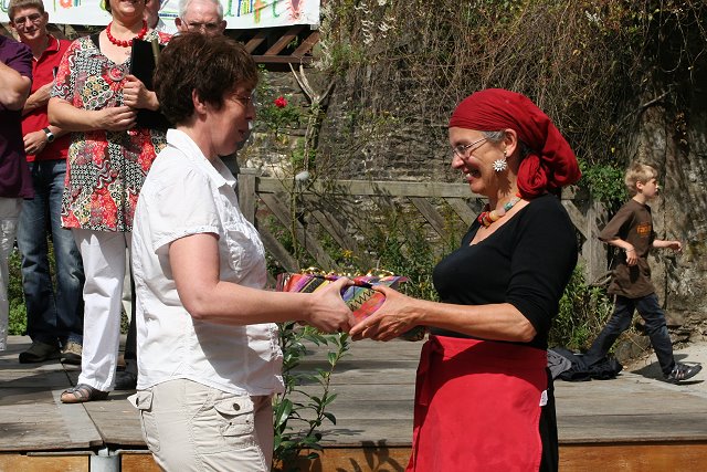 Für die Familie Dichter-Hallwachs, die seit über 25 Jahren als Herbergseltern die Jugendburg leitet, war es ein besonderer Tag, da die vergangene "Ora et Labora"-Woche die letzte für Elisabeth Dichter-Hallwachs und Reinhard Hallwachs war, weil sie zum Jahresende schweren Herzens in den verdienten Ruhestand gehen. Elisabeth Dichter-Hallwachs bedankte sich im Anschluss an das Hochamt herzlich bei den Teilnehmern und betonte in hohem Maße die Bedeutung dieser Tradition für den Erhalt der Jugendburg.