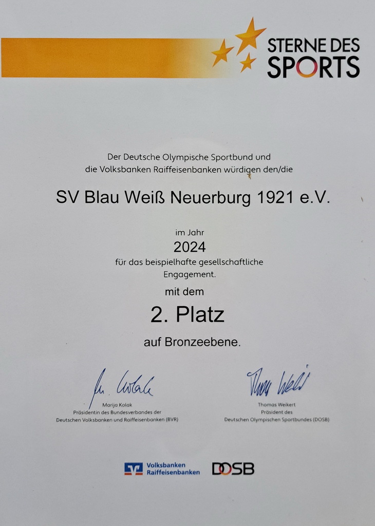 Tolle Anerkennung für den SV Blau Weiß Neuerburg 1921 e.V.!