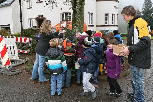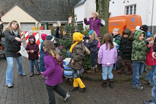 Kinder schmücken Weihnachtsbäume in Neuerburg