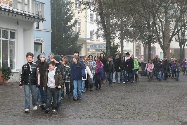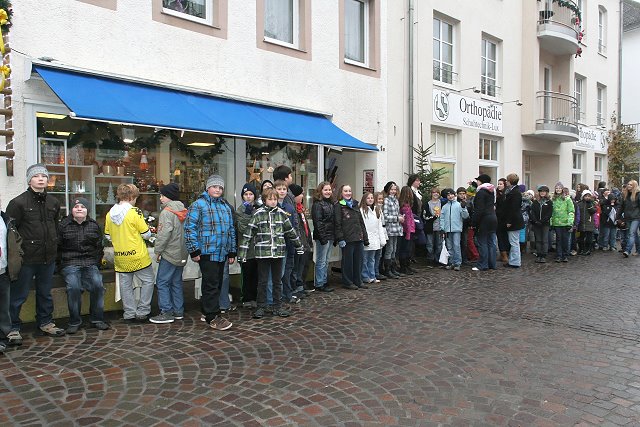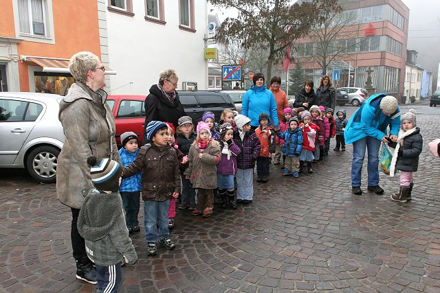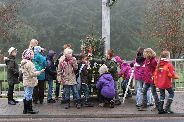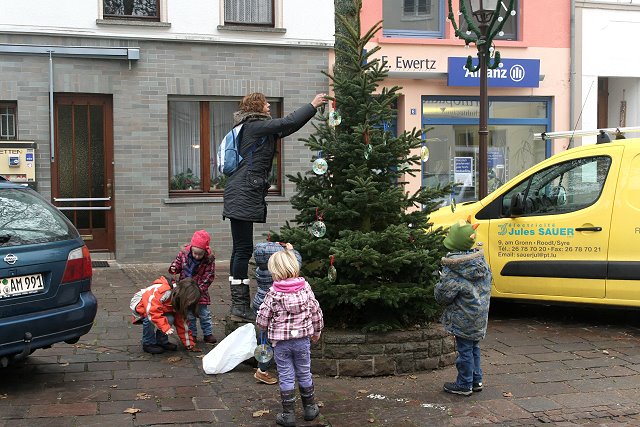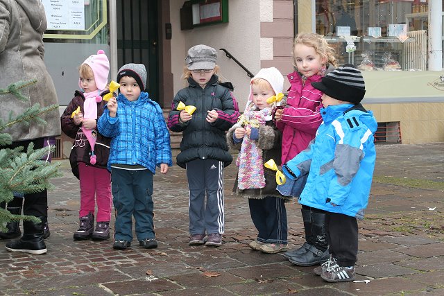 5 Schulklassen und rund 30 Kinder der KiTa traten zum gemeinschaftlichen Schmücken der überall im Stadtkern aufgestellten Tannenbäumchen an und verleihten diesen mit selbst gebastelten Anhängern ein weihnachtliches Flair.