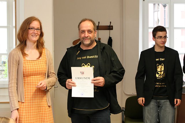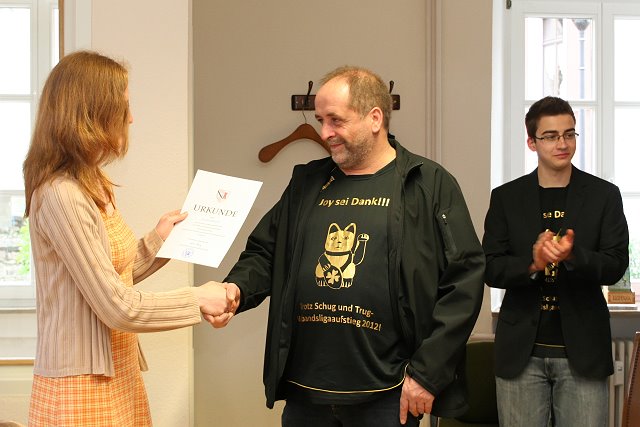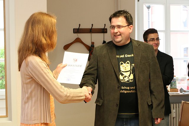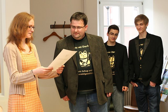 Nach ihrem überaus erfolgreichen Aufstieg in die Verbandsliga kamen die Spieler unserer Handballmannschaft zu einer kleinen Feierstunde im Stadthaus zusammen. Alle Spieler erhielten nach einer kurzen Begrüßung durch Stadtbürgermeisterin Anna Kling eine persönliche Urkunde zur Meisterschaft und zum Aufstieg in die Verbandsliga.