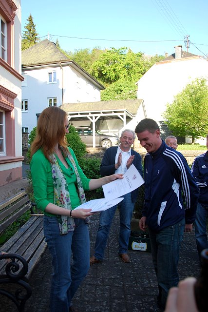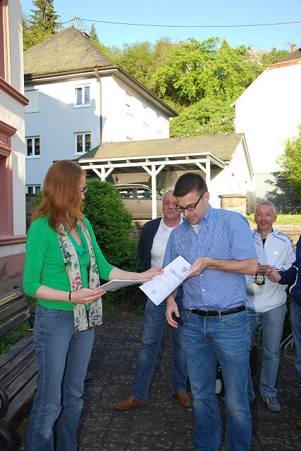 Trotz der ausgiebigen Feier am letzten Sonntag, schafften es die meisten „Helden“ der Aufstiegsmannschaft am Montag, den 14.05.2012, der Einladung von Stadtbürgermeisterin Anna Kling und vom Ersten Beigeordneten der Stadt, Lothar Fallis, zu folgen und bei sonnigem Wetter zum Stadthaus der Stadt Neuerburg zu kommen.