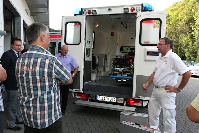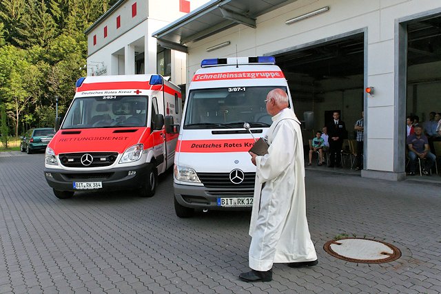 Die kirchl. Segnung wurde durch Pfarrer Trauten vorgenommen. Im Anschluss wurde das Fahrzeug durch den Leiter der Rettungswache Neuerburg, M. Rodens vorgestellt. Der stellv. Vorsitzende des Kreisverbandes, Ernst Hitzges sicherte den Anwesenden zu, dass das Rote Kreuz auch in Zukunft alles dafür tun werde, dass eine gleichwertige Versorgung der Bevölkerung im Kreise flächendeckend erhalten bleibe. Hierfür brauche das Rote Kreuz die ungeschmälerte Unterstützung aus der Bevölkerung. Denn ohne die vielen Fördermitglieder könnten diese große Aufgabe nicht gelöst werden.
