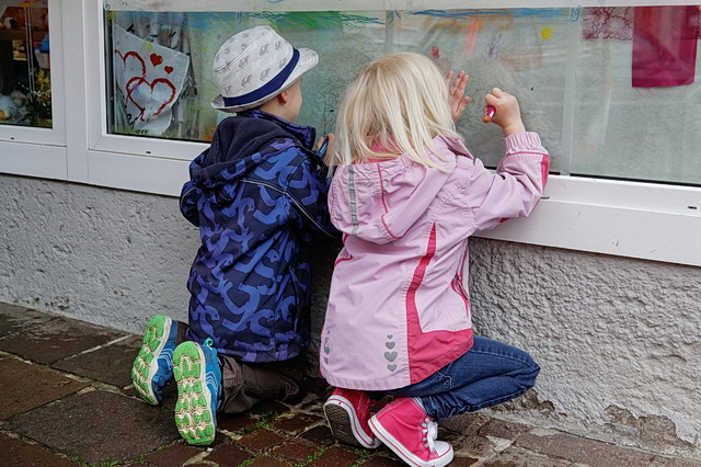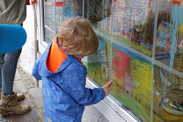 Dies durften sie mit den neuen Stiften von Lamy. Mit den Lamy 3plus Stiften kann man nämlich nicht nur auf Papier Holz und Steine malen sondern auch auf Glasscheiben. Und auch die Mütter können beruhigt sein, da die Farbe der Lamy Stifte problemlos mit Wasser von den Scheiben zu bekommen ist.