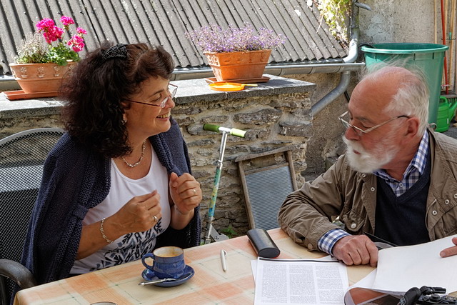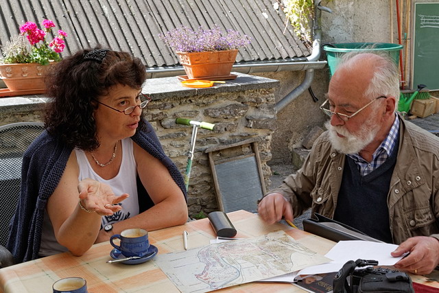Unter der beeindruckenden Kulisse des Lehnshausturms schmiedeten wir Pläne. Wie kann Neuerburg (auch durch mein Buch) interessanter für Touristen gemacht werden? Wie kann man der schlimmen Vergangenheit als Hochburg der Hexenverfolgung Rechnung tragen, ohne in oberflächlichen Aktionismus abzugleiten? Wie könnte eine hochkarätige (jährliche?) Veranstaltung aussehen, damit Besucher aus nah und fern angelockt würden? Sogar erste Ideen für ein kleines Filmprojekt wurden diskutiert.