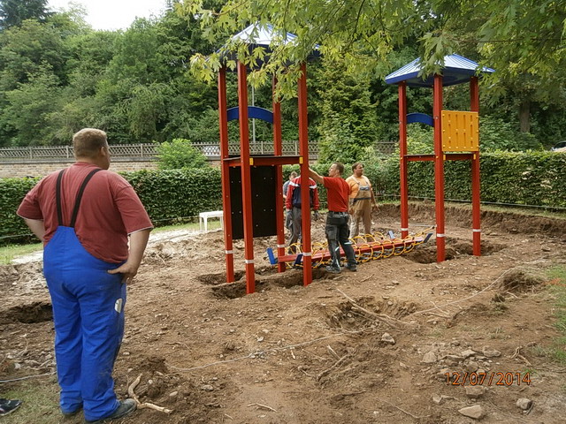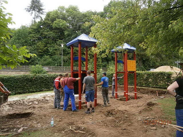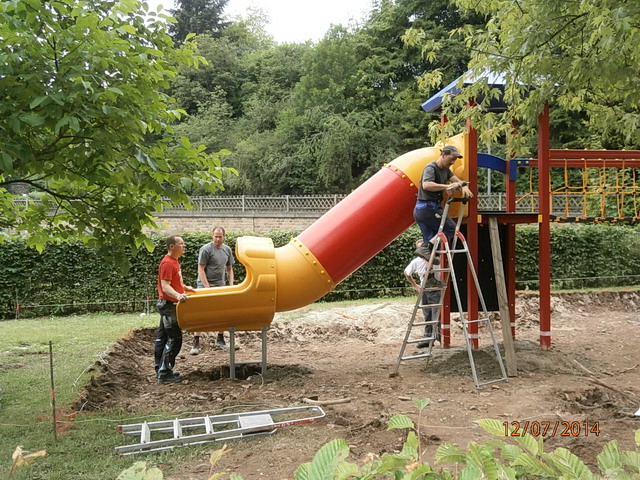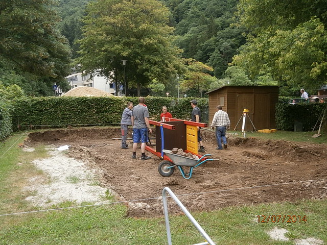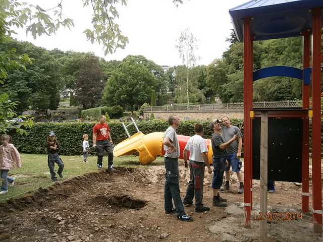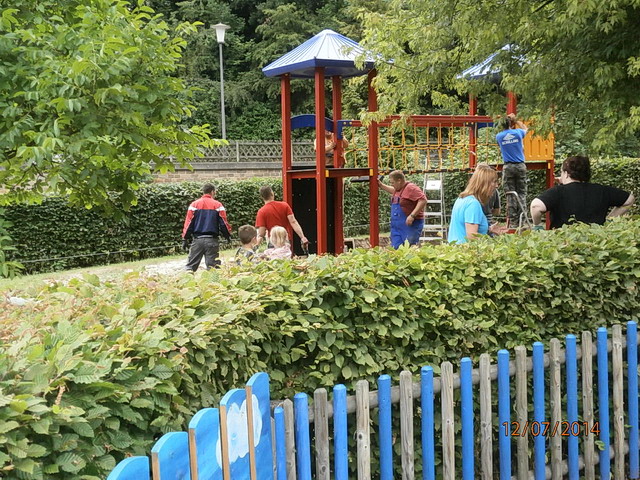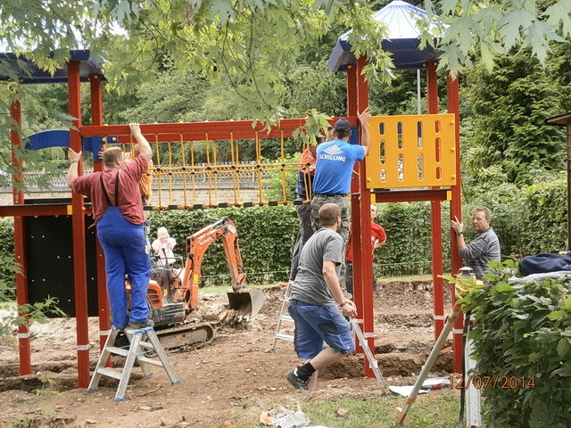 Durch den unglaublich großen Einsatz zahlreicher freiwilliger Helfer konnte kürzlich in der Außenaktion 2014 das Spielgelände der Kindertagesstätte Neuerburg zügig und kostensparend fertig gestaltet werden.