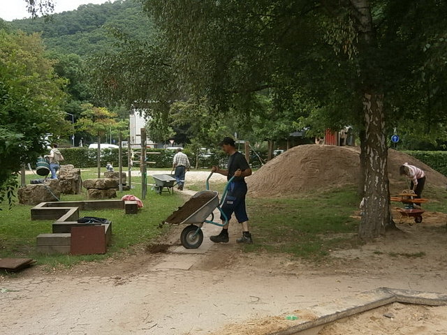 Eltern, Großeltern, Ortsbürgermeister und das Kitateam arbeiteten Seite an Seite, um den Kindern der Kita ein noch ansprechenderes Außengelände bieten zu können. Das gemeinsame Tun schaffte Gelegenheit, sich untereinander besser kennen zu lernen, und man hatte gemeinsam spürbar viel Spaß an der Sache. Dank der finanziellen Unterstützung des Trägers, der an der Kita beteiligten Ortsgemeinden und des Fördervereins Enztalkids wurde eine neue Schaukel für den Kleinkindbereich und eine Turmkombination mit Röhrenrutsche für Kinder ab drei Jahre angeschafft. Kinder, Eltern und das ganze Team freuen sich über das tolle Ergebnis.