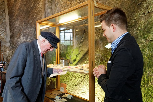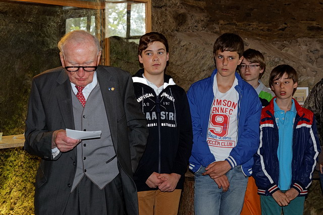 Es folgten viele Stunden, in denen die Jugendlichen in Ihrer Freizeit die Funde nach archäologischen und geschichtswissenschaftlichen Gesichtspunkten analysierten und auswerteten. GESCHICHTE ZUM ANFASSEN. Als Ergebnis dieser Auswertungen ist eine kleine Ausstellung entstanden. In dieser wurde die Geschichte Neuerburgs in der unmittelbaren Nachkriegszeit beschrieben (besonders die Beziehung zwischen Luxemburger Soldaten und der Stadtbevölkerung) und die Gegenstände und Dokumente auf ihren historischen Wert und deren Aussage hin präsentiert. Die Ausstellung wurde zunächst in der Sainte-Sophie Schule der Öffentlichkeit zugänglich gemacht und heute im Rahmen einer kleinen feierlichen Übergabe der Stadt bzw. der Burg – im Zeichen der heutigen freundschaftlichen Beziehungen zwischen Luxemburg und Deutschland – übergeben.